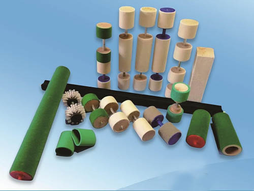該產品用于502、503機型彈簧搖架。絨輥表面光潔,木質干燥,8毫米鋼軸與木棍裝配牢固,不松動,植絨牢固、密實、無熒光,清花效果好,通心度高,運轉平穩,與皮