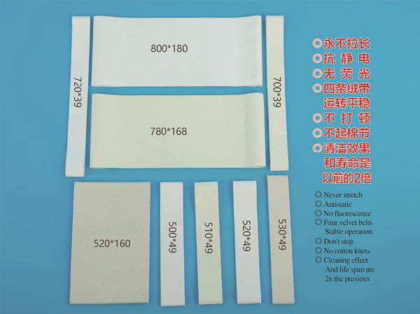 新型粗紗并條機靜電植絨清潔絨帶抗靜電無熒光、永遠不拉長、清花效果好,使用壽命是以前的三倍。